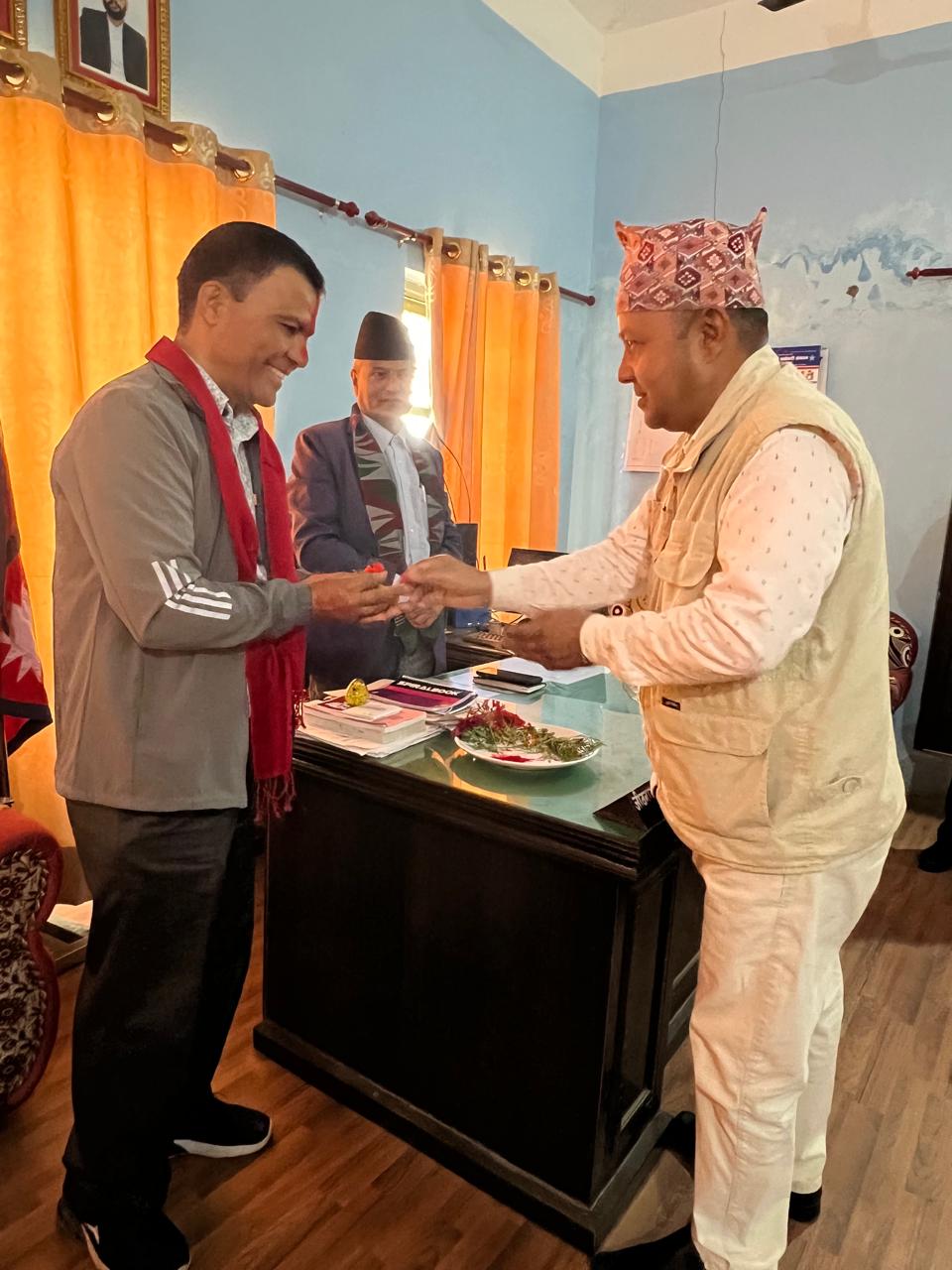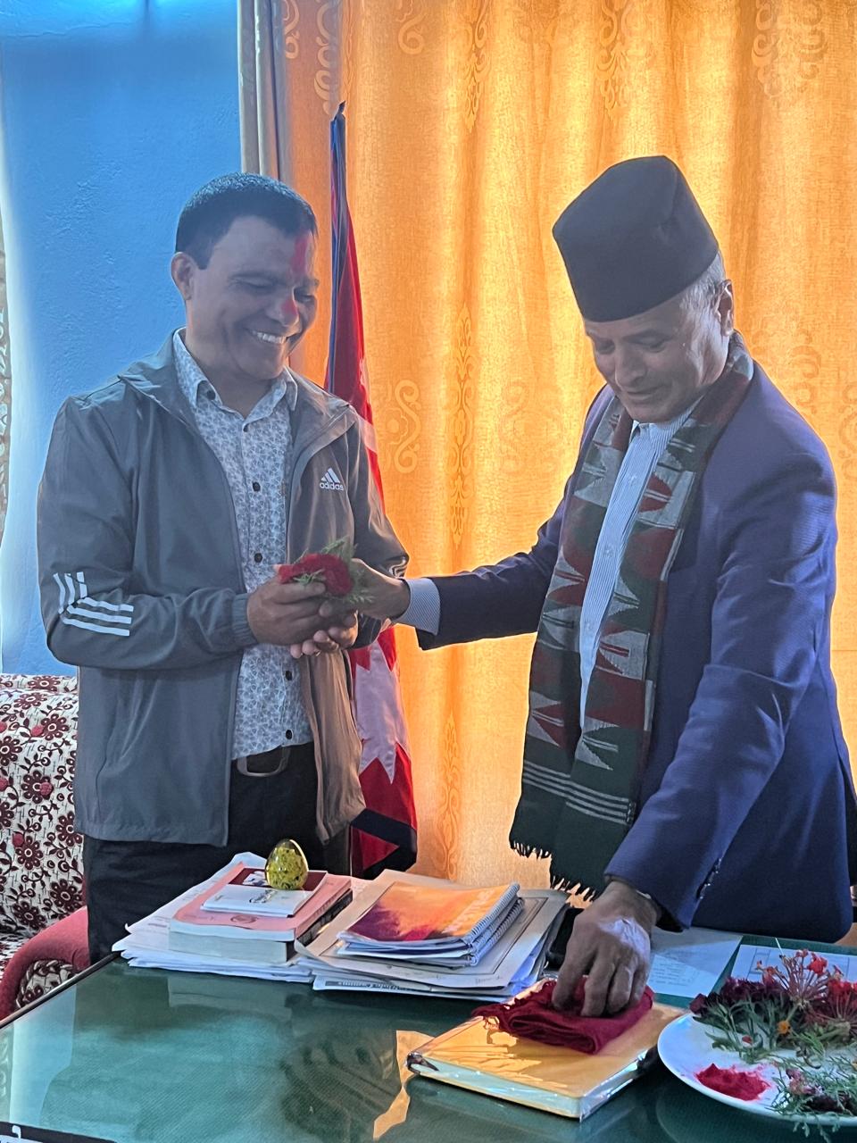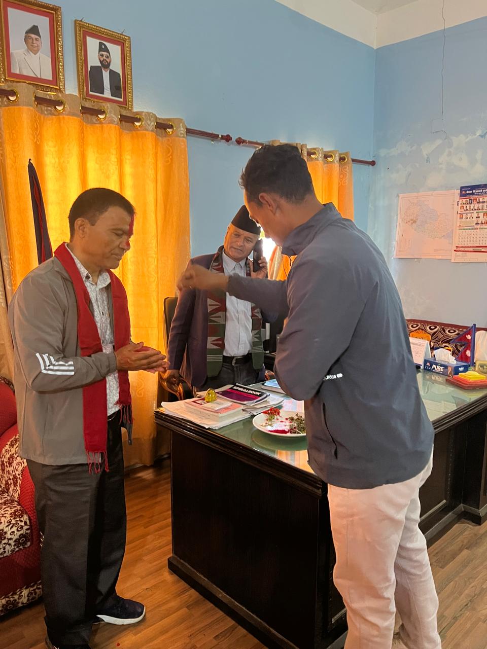 जिल्ला समन्वय अधिकारी श्री केशव ज्ञवालीलाई यस कार्यालयमा स्वागत गर्दाका तस्विरहरु